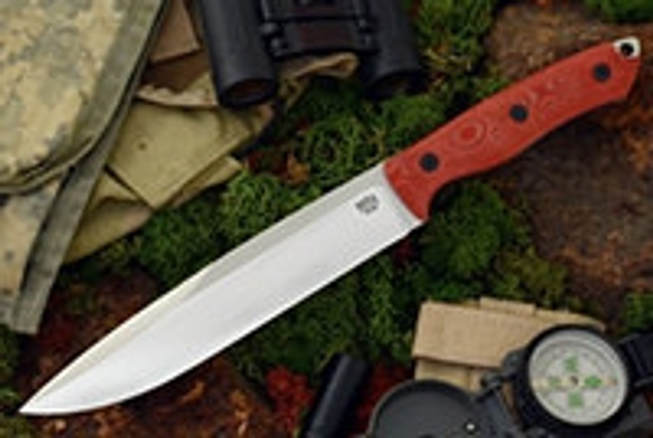 The Bark River STS-7 is a longer version of the STS-5 with a similar blade shape and design. The longer blade (7.75", .270" thick) allows the knife to make deeper slash cuts and provides weight forward heft for chopping. Built at the request of US Marine Corps Force Recon, this knife is built for serious duty as well as civilian uses.