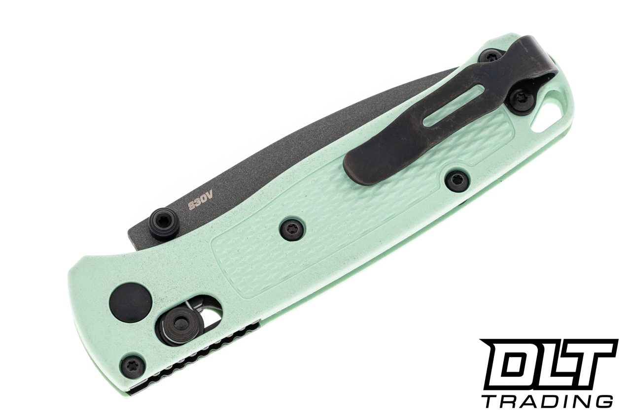 Backpackers and ounce-counters rejoice. The Mini Bugout brings the legendary quality and features of its full-size brethren in a smaller 1.5-ounce package with a 2.82-inch blade. The CPM-S30V blade ensures years of reliable work. At less than four inches folded, its a flyweight that punches way out its weight class, virtually disappearing in a backpack or pants pocket. The Sea Foam Grivory handle and Tungsten Grey Cerakote blade finish of the 533GY-06 are reminiscent of ocean waves crashing against coastal rock formations.