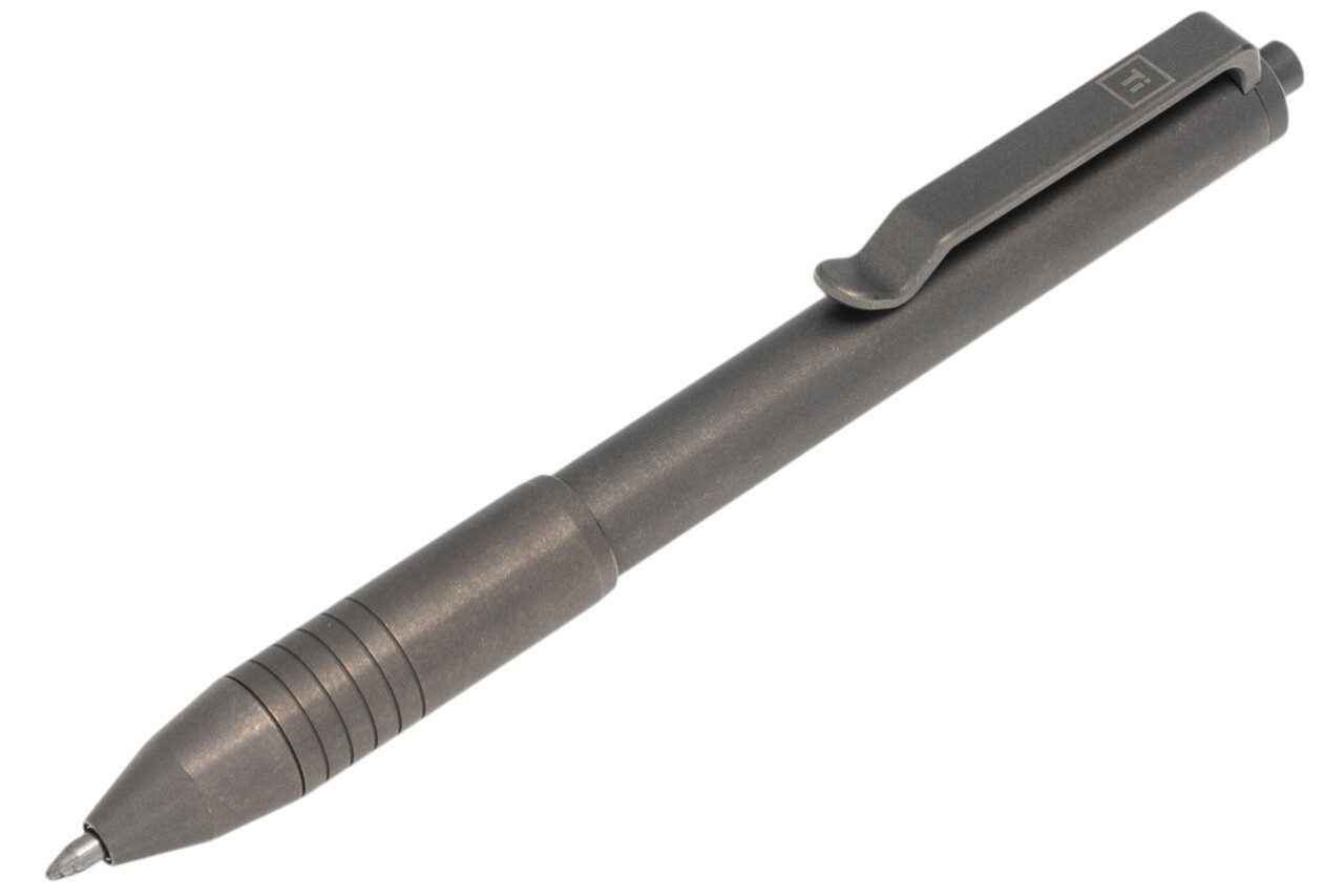 All pens feature reversible deep carry pocket clips machined from Grade 4 titanium for proper tension. Available in stonewashed, machined raw, and DLC black finishes, with copper and brass options on select models.