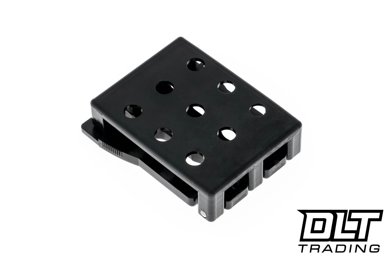 The small Tek-Lok from Blade Tech brings a modern adaptation to belt attachments. It has 9 mounting holes, spaced 1/2" apart, allowing it to mount to a wide range of sheaths and holsters. It locks tightly in place, and is removed by pinching the locking tabs on the bottom.