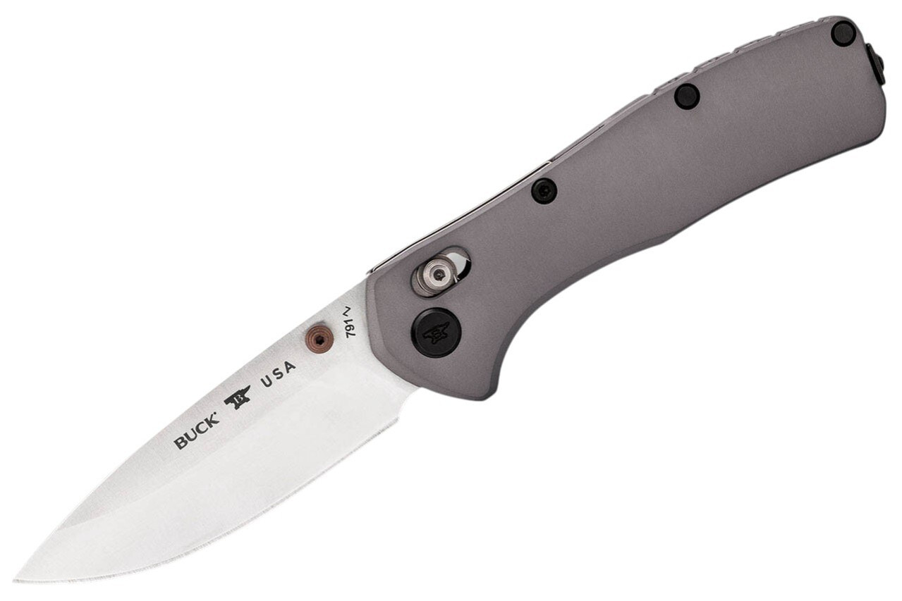 Buck’s modern folding knife lineup extends well beyond the classic 110 and 112 lockbacks. The current catalog spans premium USA-made designs in CPM-MagnaCut and S45VN alongside D2 import lines like the Nomad, Ferrox, and Stinger.