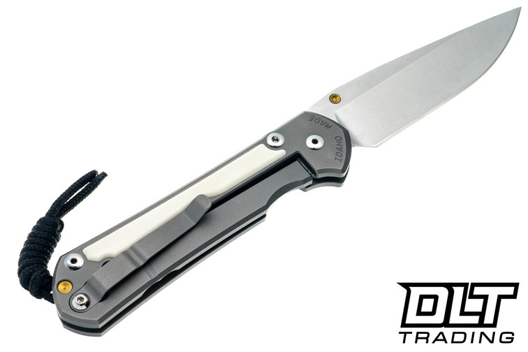 DLT Exclusive Chris Reeve Large Sebenza 31, featuring Elforyn Super Tusk Micarta. All of the knives feature a glass bead blasted titanium body, MagnaCut blade, and bronze thumbstud.