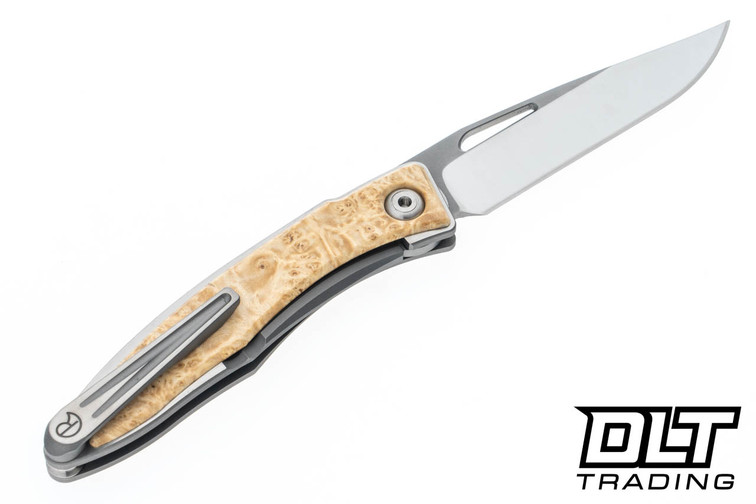 With hand-polished finishes and a handle at 3.6" long, the Mnandi is among our smallest and sleekest low-profile folders. Inlays are made from natural materials, so you can expect a variation in color and wood grain.