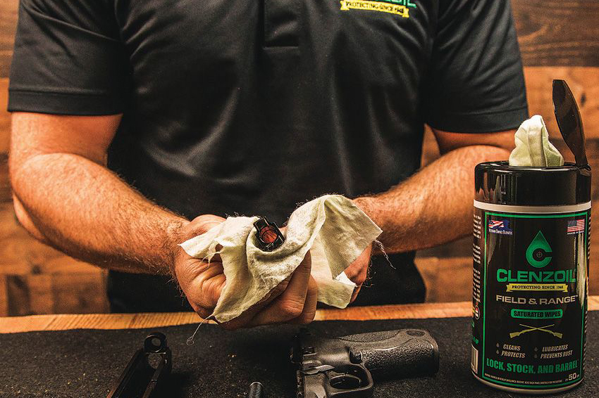 The Clenzoil Field & Range Saturated Wipes offer convenient and mess-free application of Clenzoil's high-quality one-step cleaner, lubricant, and rust preventative for lock, stock, and barrel. Each wipe is saturated with Clenzoil's advanced formula, providing quick and effective maintenance for firearms and sporting equipment, whether in the field or at the range. Clenzoil Field & Range Saturated Wipes are ideal for a quick and easy wipe down after a day in the field or on the range but can also double as bore patches after being cut into appropriate sized strips as needed. Each container comes packed with approximately 75 5 x 7 meltblown non-woven fabric wipes pre-saturated with the Clenzoil Field & Range Solution. Cleans, protects, lubricates, and prevents rust. Effective for removing oils, dirt, copper, lead, and other contaminants. Contains 50 wipes.