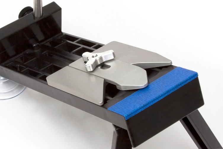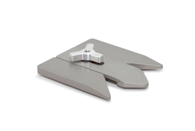 The Slide Guide gives you 2 points of contact on the knife. This improves blade stabilization and allows quicker, more repeatable blade placement. One piece extends from one edge of the blade table to the other, while the center piece slides back and forth independently and can lock in to position to accommodate a wide variety of blade shapes and sizes. It works well by itself, but when combined with a magnetized blade table it makes sharpening on the Edge Pro knife sharpener easier than ever before. The Slide Guide is machined from 6061 T6 aluminum, and has a .002" thick hard anodized coating to protect it from wear and tear over time. A high quality accessory to add to your knife sharpening kit and arsenal of sharpening supplies.