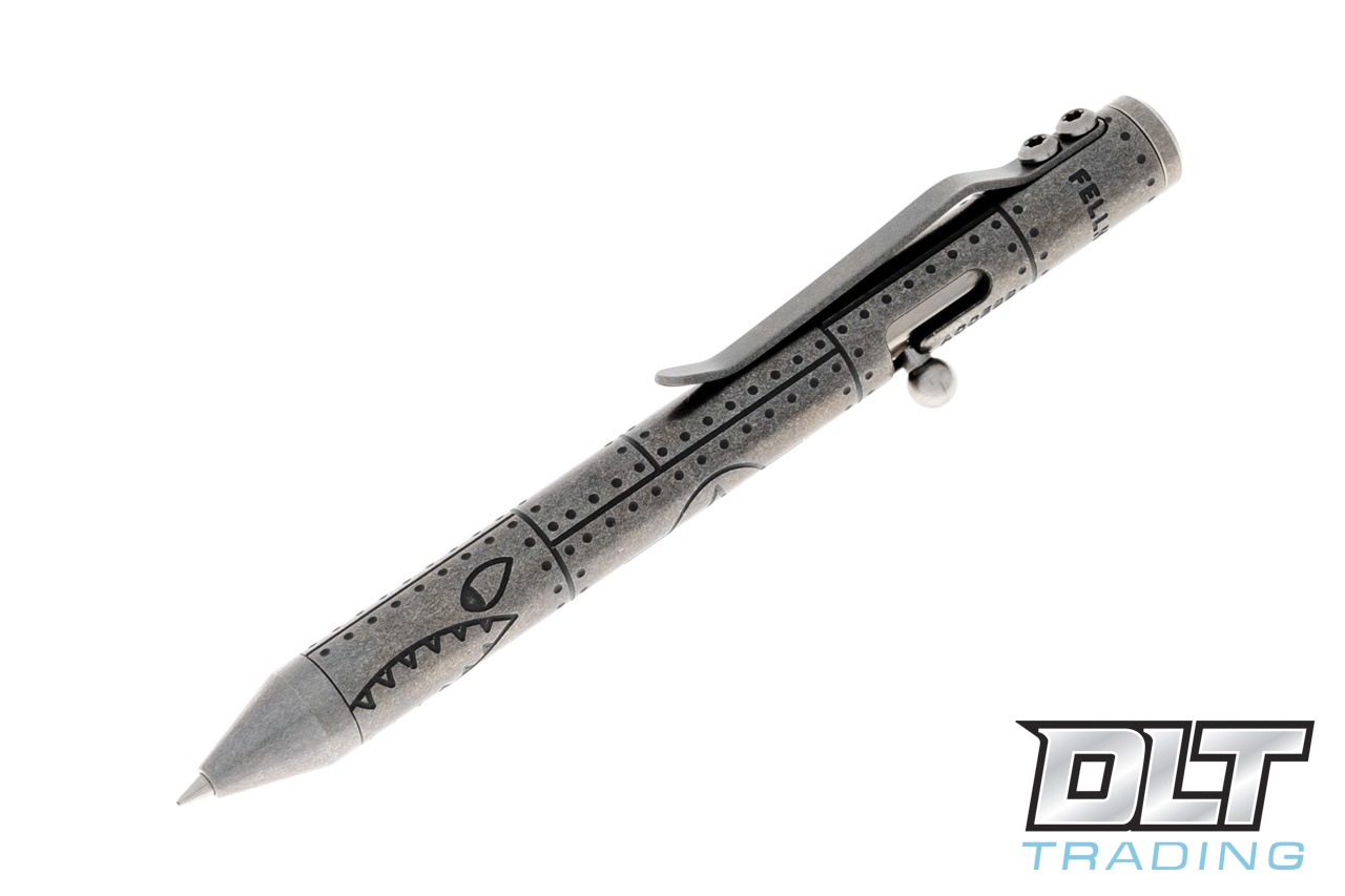 Fellhoelter engraved on pen body. Deluxe G2 titanium with a 4.875" length. The G2 PILOT MINI refill is used in the G2 sized TiBolt.