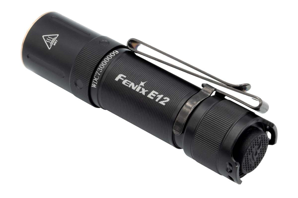 The Fenix E12 V2.0 AA Flashlight emits an impressive maximum 160 lumens from an included single AA battery. Using an ultra-thin optical lens, this flashlight delivers a soft and balanced beam a max distance of 223ft (68m). Access three brightness levels with a tap of the tail switch. At only 3åÓ long, this flashlight is a great everyday carry size, and with its two-position body clip, you can carry it as you wantåÑeven clip it to your hat and use it as a headlamp. This little flashlight is built tough with an IP68 dustproof and waterproof rating. ItåÕs hard to beat the ease of powering your flashlight with one single AA battery. Super small and bright, the Fenix E12 V2.0 is a great upgrade for those looking for a AA powered EDC flashlight.