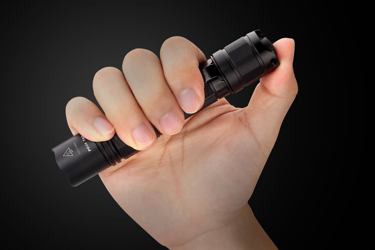 The Fenix PD35 TAC (Tactical Edition) LED Flashlight, remains in its pocket-size form but surpasses the traditional PD35 in performance and tactical employment. Designed with the military and law enforcement professionals in mind, this flashlight is measured at less than 14cm (5.5 inches) long and features up to 1000 lumens in turbo output while throwing its beam a distance up to 200 meters. In Outdoor Mode, the PD35 TAC delivers six output modes including a variable strobe. Switch to the new Tactical Mode to activate rear-switch only operation for fast, simplified mode selection of momentary, turbo, low and strobe. The PD35 TAC is powered by two CR123A or single rechargeable 18650 batteries.