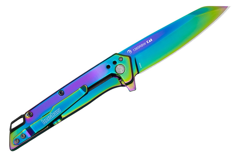 The Misdirect features rainbow PVD coating on both the blade and stainless steel handle. The 3-inch reverse tanto blade is ground from 4Cr14 steel with a polished rainbow finish. SpeedSafe assisted opening activates with the flipper tab for one-handed deployment. A frame lock secures the blade open during use. The all-stainless steel handle construction provides durability at 3.1 ounces, with the rainbow PVD coating covering the entire handle. The reversible pocket clip allows right or left-hand carry, tip-up, or right-hand tip-down carry. At 4 inches closed, the Misdirect fits easily in a pocket. Part of Kershaw's Starter Series, the knife balances affordability with functional design.