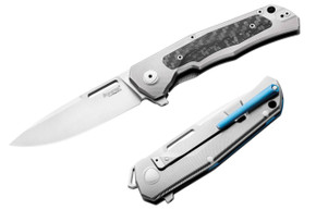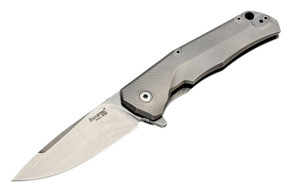 The TiDust is the first production knife to use Direct Metal Laser Sintering (DMLS) for handle construction by selectively fusing titanium powder. This additive manufacturing process creates skeletonized titanium 6Al4V frames with openwork patterns not possible with traditional machining. The limited run of 100 units featured 3.54-inch Sleipner steel blades with lockback mechanisms and IKBS bearing systems. The technology reduces handle weight while maintaining structural integrity through layered titanium construction.