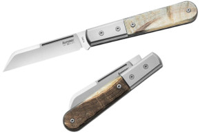 The T.R.E. (Three Rapid Exchange) series offers modular blade deployment with removable flipper tabs and thumb studs for user customization. The 2.91-inch M390 blades use IKBS ball bearing pivot systems, framelock mechanisms, and reversible pocket clips. Bronze, gray, and black anodized titanium handles accept G10 or carbon fiber inlay panels. The traditional line includes the Jack series with slipjoint mechanisms, titanium bolsters, and a choice of micarta, G10, or wood scale materials with M390 blades.