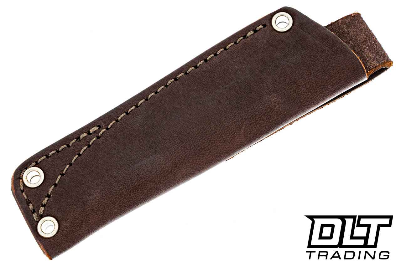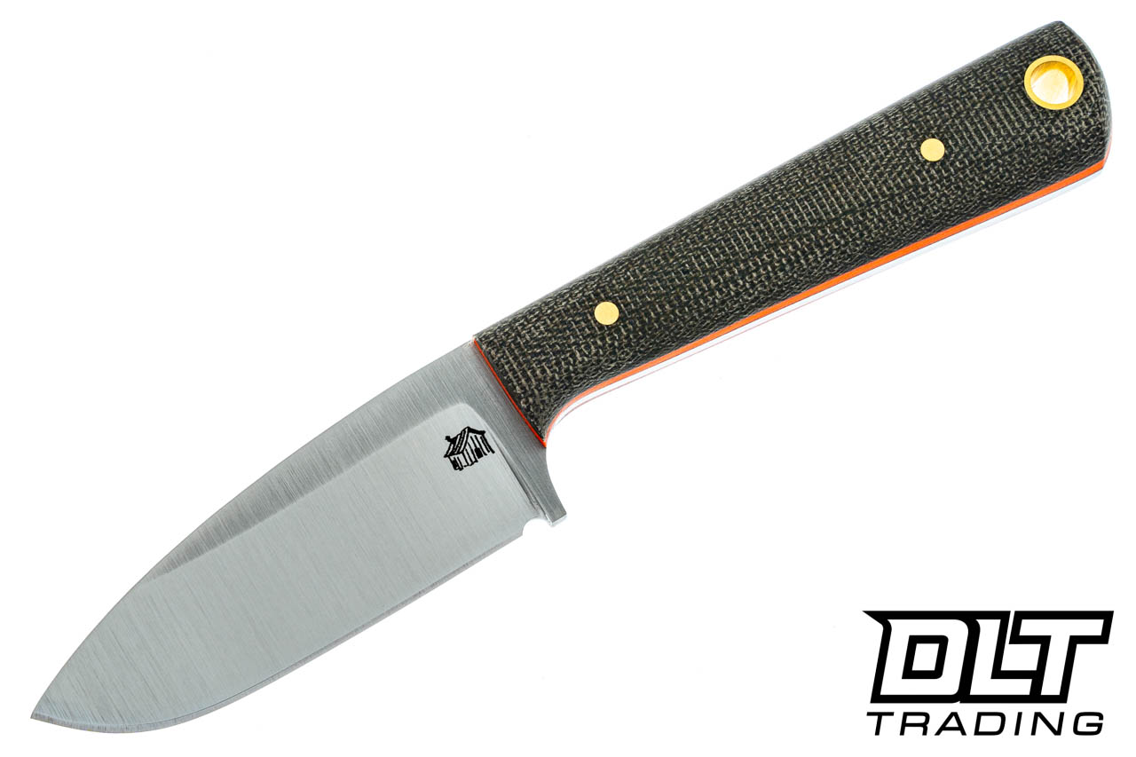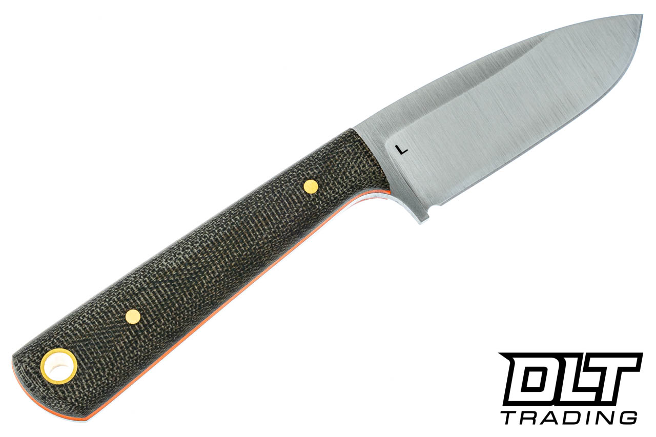 The DLT Exclusive LT Wright Daily Carry in green canvas micarta with orange liners is a new EDC fixed blade made from AEB-L stainless steel. It features a 3" blade, with a handle big enough for a full grip. Each knife includes a leather belt carry sheath.