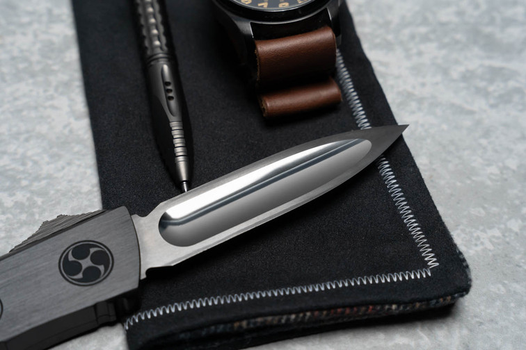 Introducing the Marfione Custom Combat Troodon O-Yari, a fusion of design and functionality. Its distinctive D/E design, coupled with a deep bayonet grind on the back side, offers exceptional cutting versatility. The two-tone blade showcases a sleek DLC flat, harmonizing with mirror-polished grinds, creating an unparalleled visual allure.