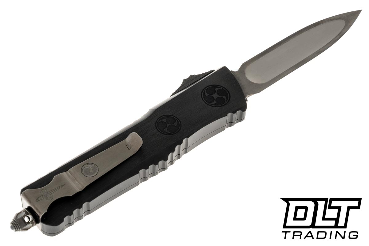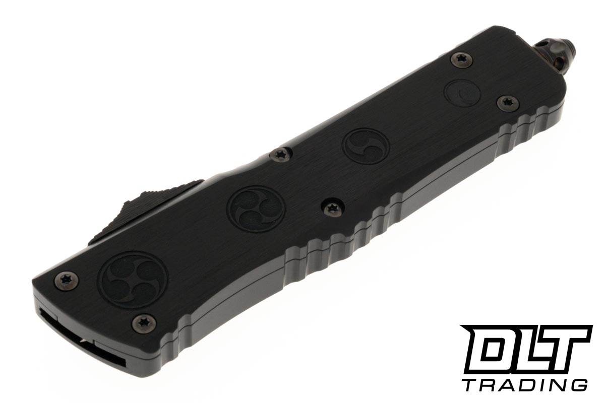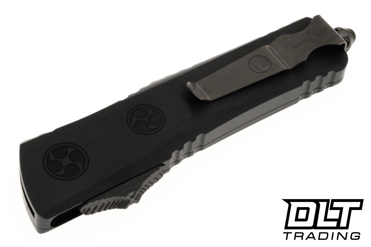 Crafted with care, the black aluminum handle features deep engraved crests, adding a touch of sophistication. The carbon fiber button completes the look, balancing elegance and utility seamlessly. This Combat Troodon O-Yari is not just a knife; it's a masterpiece, ready to captivate both the eye and the hand.