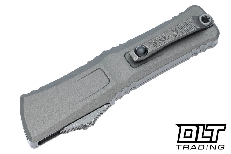 Microtech's redesigned Combat Troodon stands as a pinnacle in hard use OTFs, setting a new standard for robust, automatic knives. Featuring an innovative drive train system, this iconic knife ensures swift deployment in critical situations and hassle free disassembly for user convenience. The upgraded button pocket design minimizes friction, expelling debris efficiently, thus reducing the need for frequent maintenance. Enhanced with strategic jimping and grooves for an exceptional grip, and equipped with a new titanium pocket clip and ceramic detent,