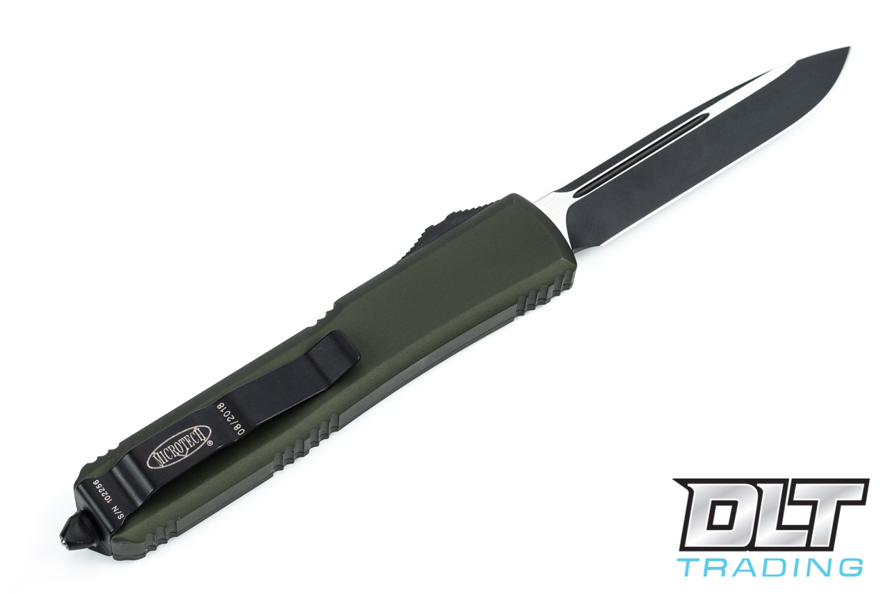 Microtech Knives | 121-1OD Ultratech S/E - OD Green Handle - Contoured - Two-Tone Black Blade