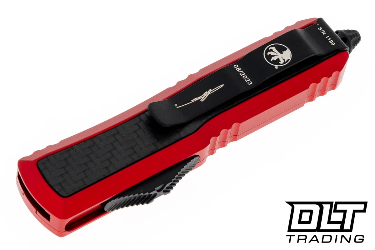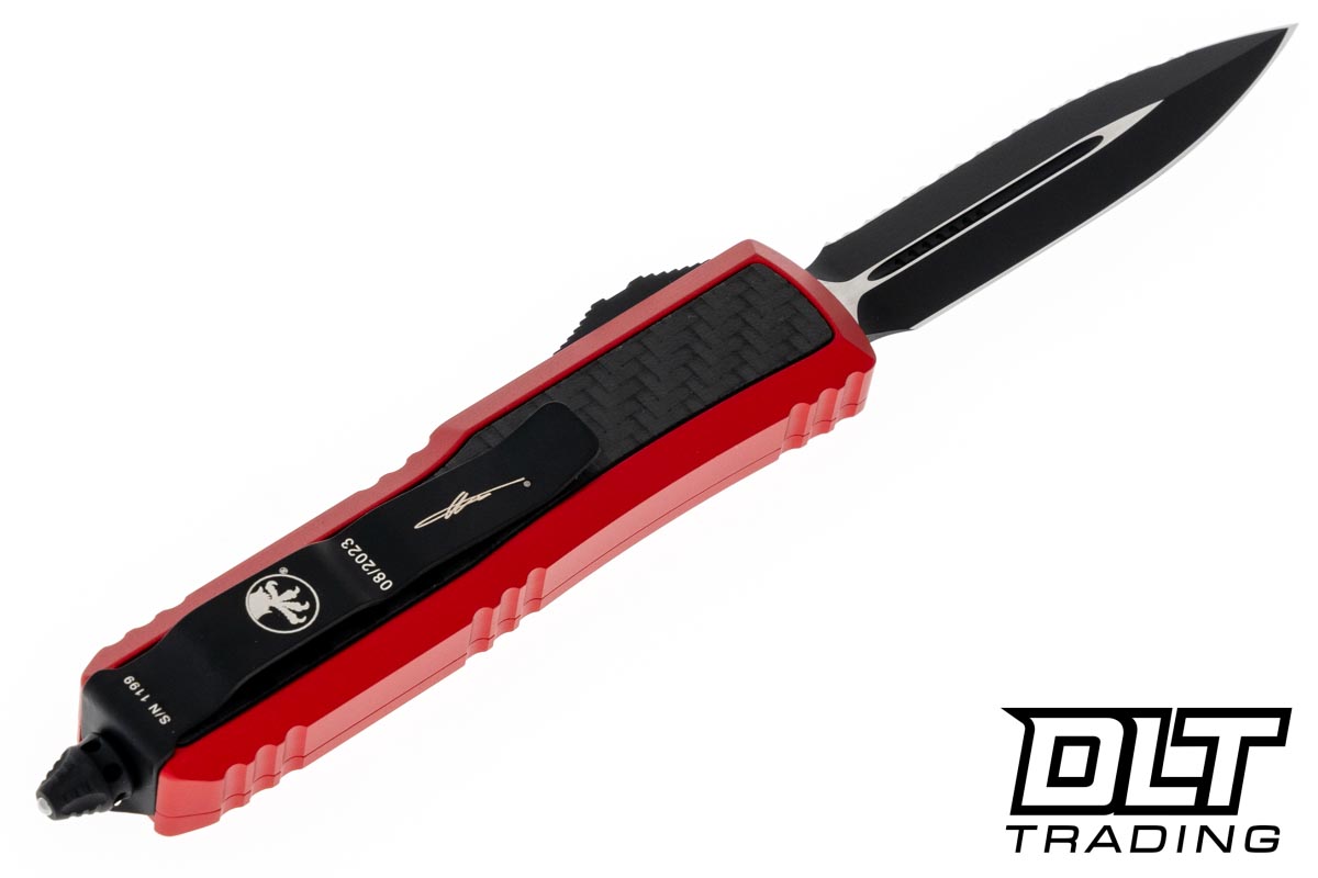 Microtech 126-3RDCFIS Daytona D/E - Red Handle - Carbon Fiber Inlay - Black Blade - Signature Series