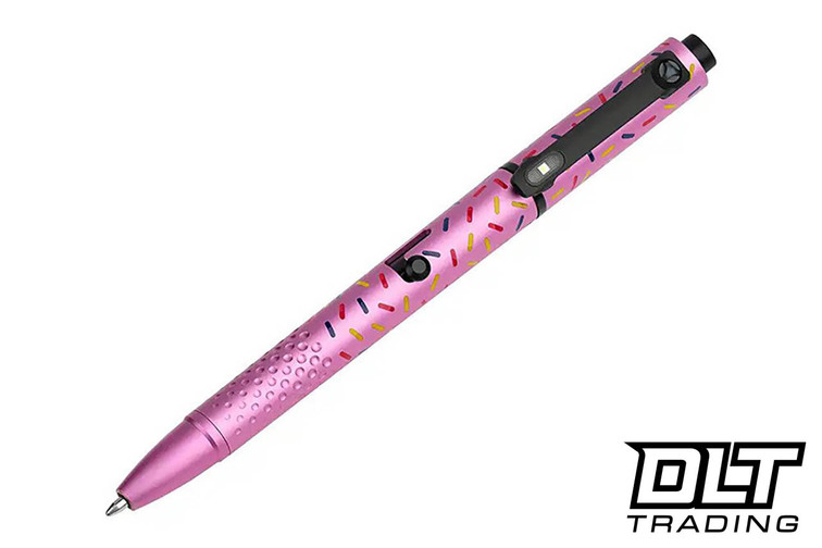 - Featuring a pen, pen clip LED light, pen tip LED light, and green pointer beam at the tail, providing multiple functions in one device, like writing, reading, or in a presentation setting. The white light switch is moved to the rear, separated from the laser switch, making the operation more straightforward.