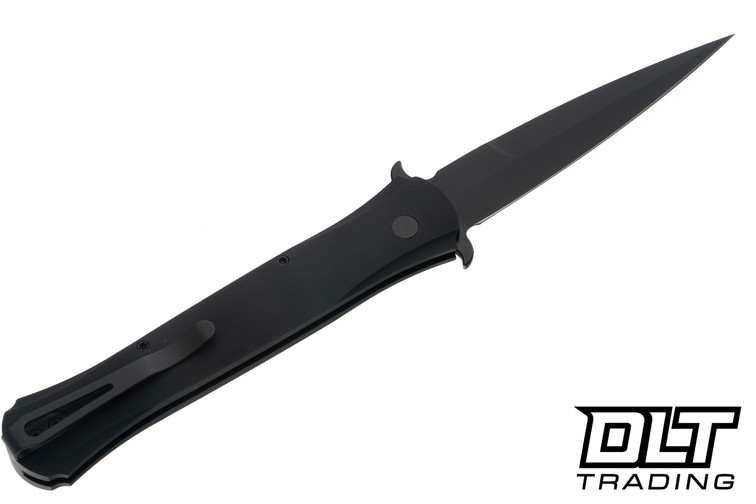 The Pro-Tech Large Don is an extra-large, distinctive, and classic knife that draws inspiration from the iconic Italian stiletto knives. The handle is expertly 3D machined to create a beautifully curved surface, both across the handle and the inlays. The Large Don features an impressive 4.5" stiletto blade, complemented by the classic “wing guard” design elements, offering a perfect blend of form and function.