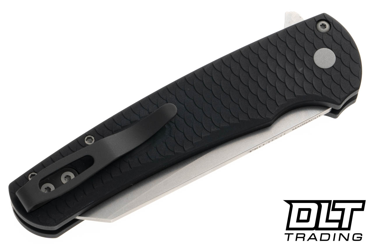 Pro-Tech Malibu Reverse Tanto - Black Dragon Scale Textured Handle - Stonewashed MagnaCut Blade
