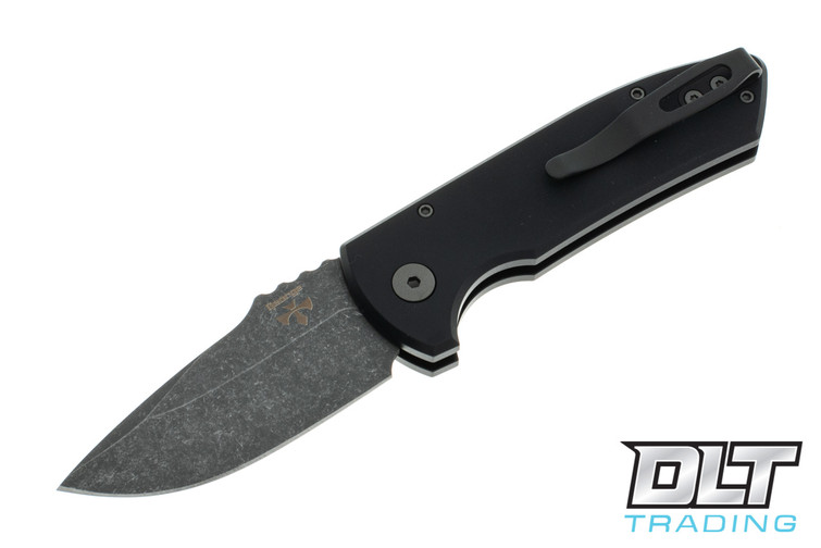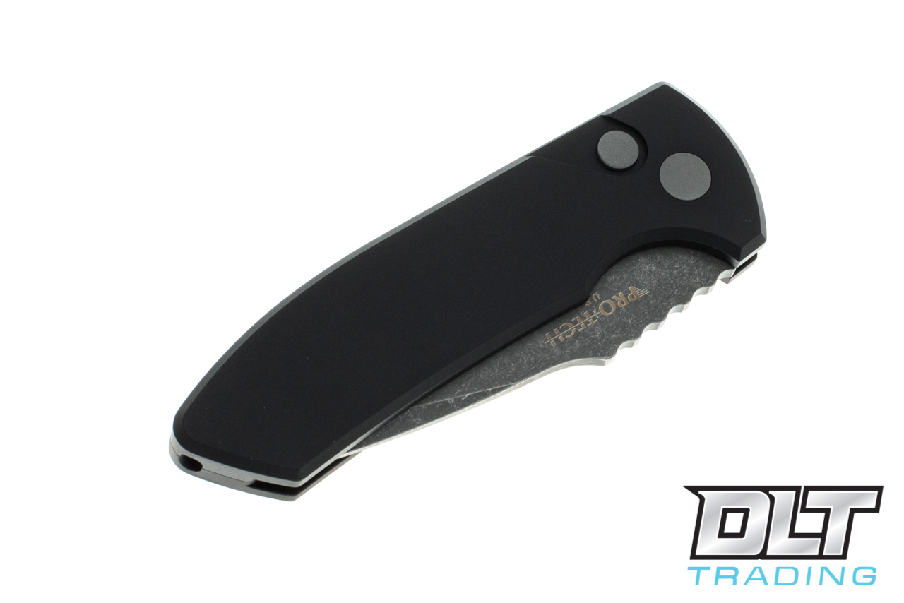 Pro-Tech SBR - Black Handle - Acid Washed Blade - Left Handed