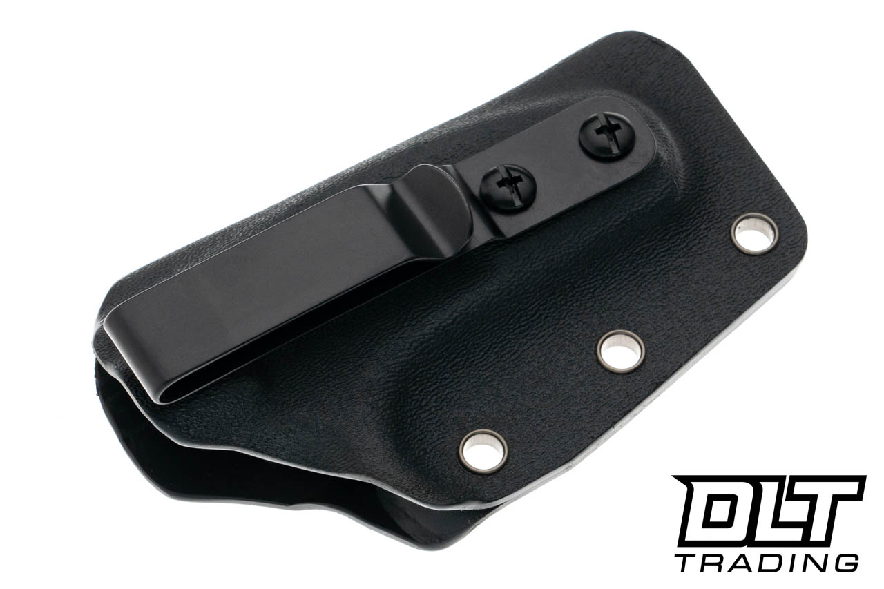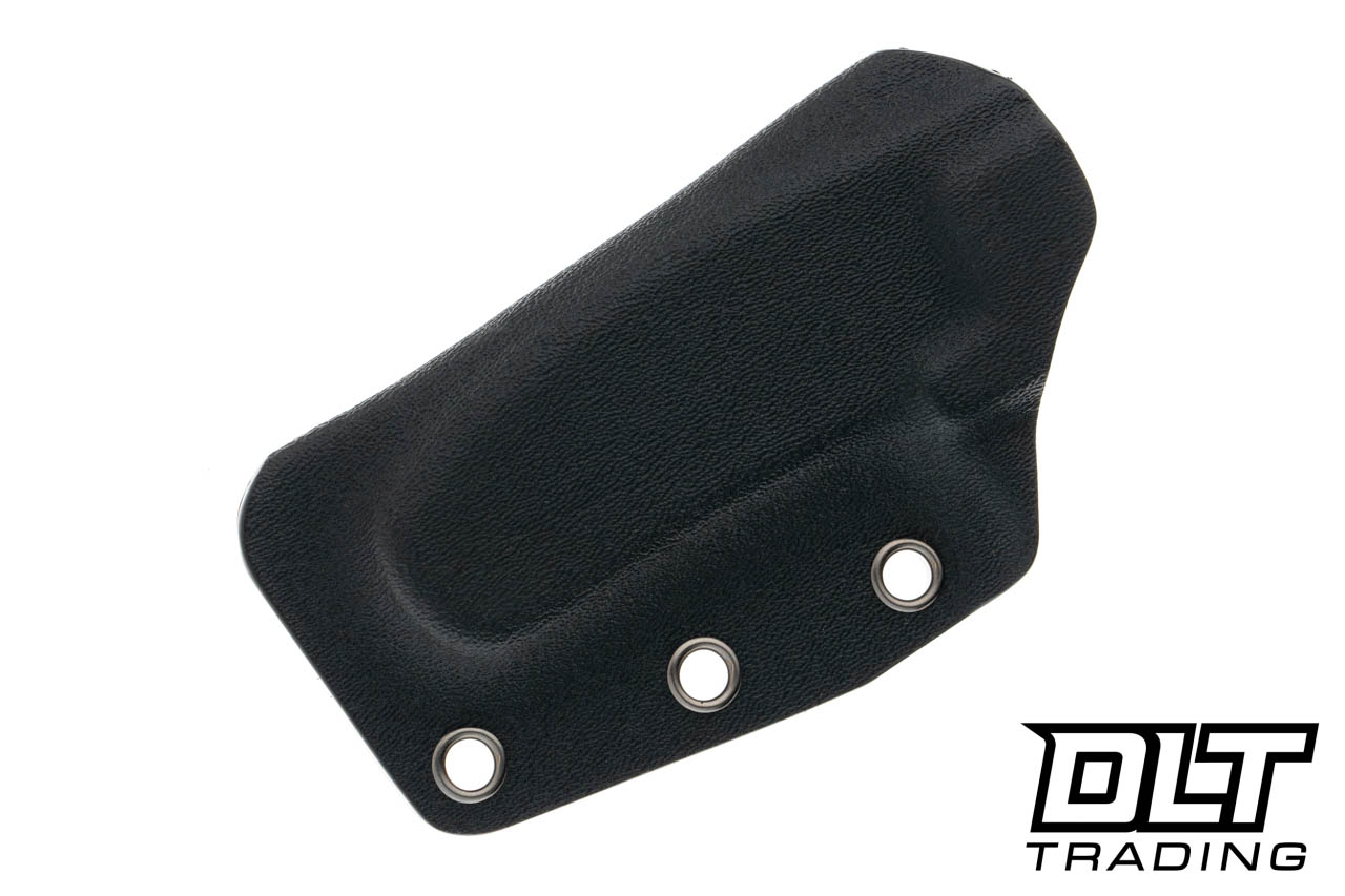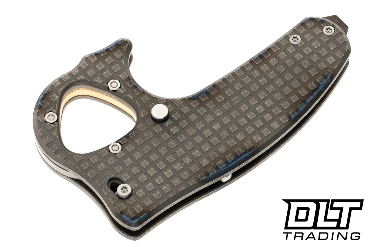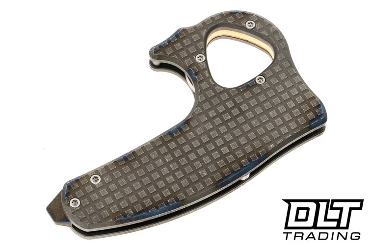 The Reate EXO-D is a distinctive button lock folder that conceals a compact 2.7" Elmax blade. Even in the closed position, it can serve as an effective impact tool, utilizing the exposed rear spacer or finger guard. It also includes a Kydex sheath with a belt loop for secure carry.