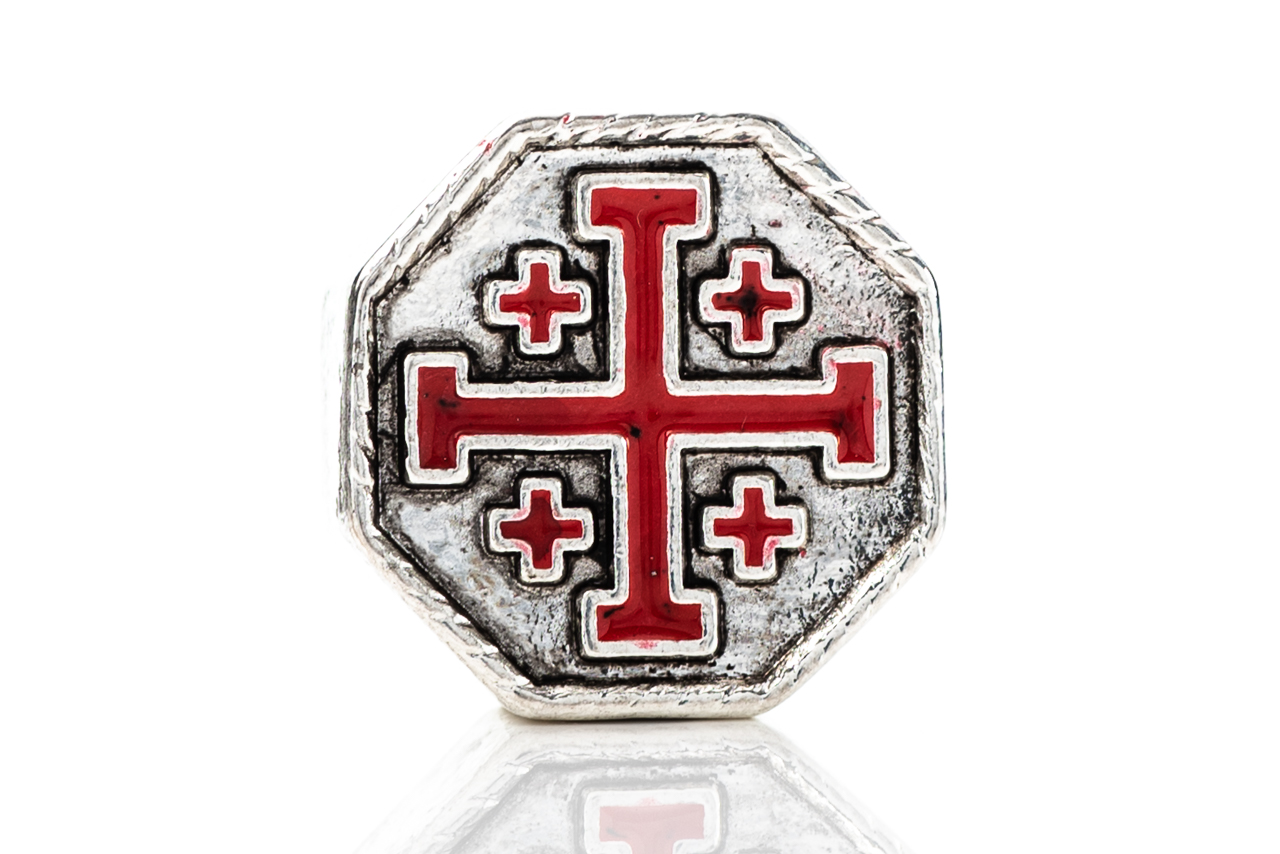- US made lead-free pewter bead, 3/4" octagonal shape with cross on both sides.