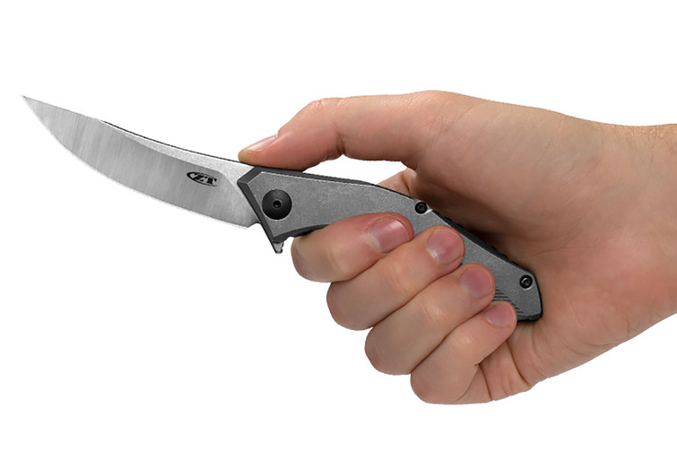 The blade steel is CPM 20CV for toughness and resistance to edge chipping with no loss of wear resistance. Rich in niobium, vanadium, and chromium carbides, it enables a sharp, long-lasting edge. For sharp looks, ZT gives the blade a two-tone finish: stonewashed on the flats and machine satin on the grinds.